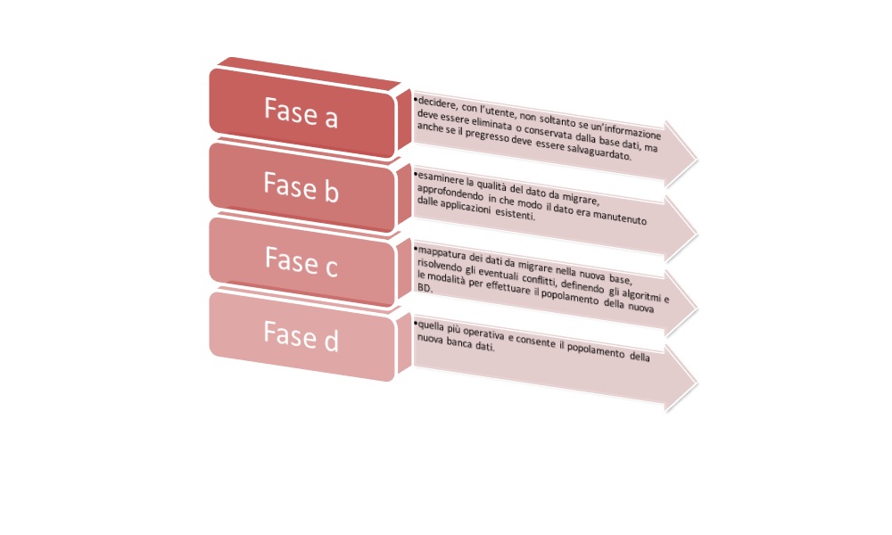La metodologia garantisce un'impostazione univoca, con particolare riferimento alla definizione delle regole di popolamento della base dati ovvero della coesistenza tra il vecchio Sistema ed il nuovo. Nell’ambito delle attività sono realizzate le procedure di estrazione, trasformazione e popolamento dei dati per la migrazione degli stessi nel nuovo Sistema. Per migrare i dati senza causare perdita di informazioni e garantire nel contempo l’integrità della nuova banca dati i passi procedurali previsti sono: