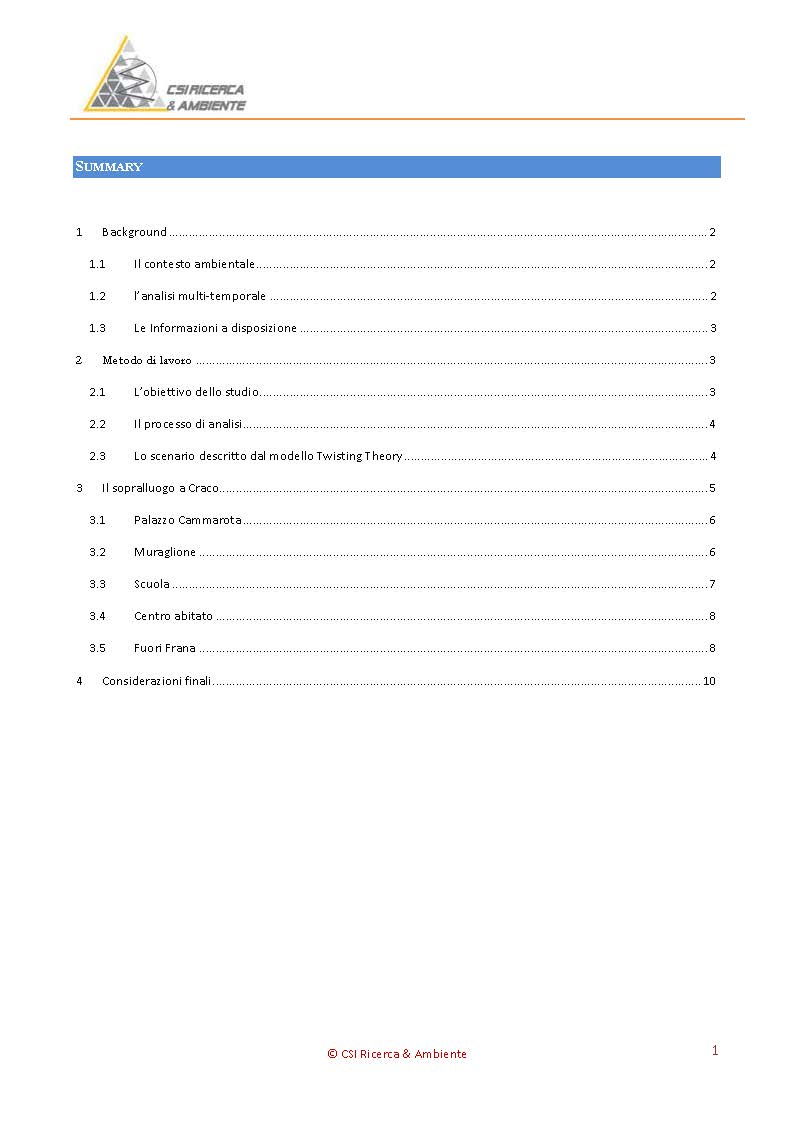 Il quaderno riporta la sperimentazione effettuata, assieme all'Agenzia Spaziale Italiana, sulla frana lenta del paese di Craco (MT). L'obiettivo dello studio è stato quello di verificare le potenzialità di alcuni algoritmi, riconducibili ai sistemi adattivi artificiali, in termini di rappresentatività e di descrizione del fenomeno oggetto di osservazione.