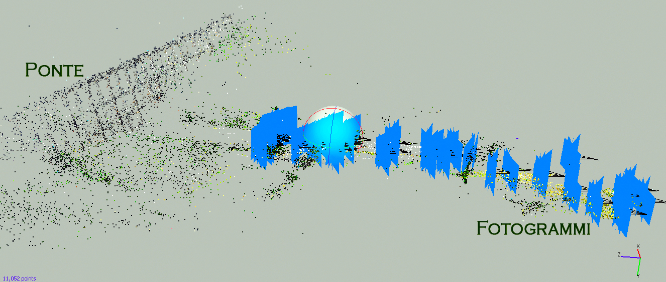 PER “STRUCTURE FROM MOTION” SI INTENDE UNA TECNICA DI CALCOLO CHE PERMETTE DI RICOSTRUIRE LA FORMA DI OGGETTI ATTRAVERSO LA COLLIMAZIONE AUTOMATICA DI PUNTI DA UN INSIEME DI FOTO (FOTOGRAMMETRIA), BASATA SU ALGORITMI DI COMPUTER VISION. LA SFM ESTRAE I PUNTI NOTEVOLI DALLE SINGOLE FOTO, DESUME I PARAMETRI FOTOGRAFICI E INCROCIA I PUNTI RICONOSCIBILI SU PIÙ FOTO, TROVANDO LE COORDINATE NELLO SPAZIO DEI PUNTI STESSI. IN USCITA DELLA PRIMA FASE DEL CALCOLO, LA SFM COSTRUISCE UNA NEBULOSA DI PUNTI, CON IL COLORE ORIGINARIO, FORMANDO UNA SORTA DI MODELLO SPAZIALE DI FOTO “SOLIDA” DEGLI OGGETTI RIPRESI.